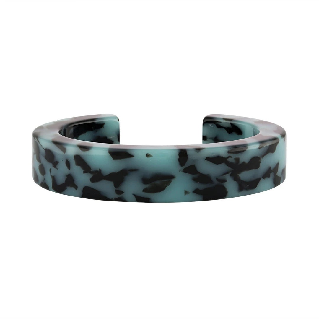 Our Architect Cuff is cut and handcrafted from Italian Acetate. Architect Cuffs may be stacked up to three at once. Model is wearing the Architect Cuff in Classic Tortoise.