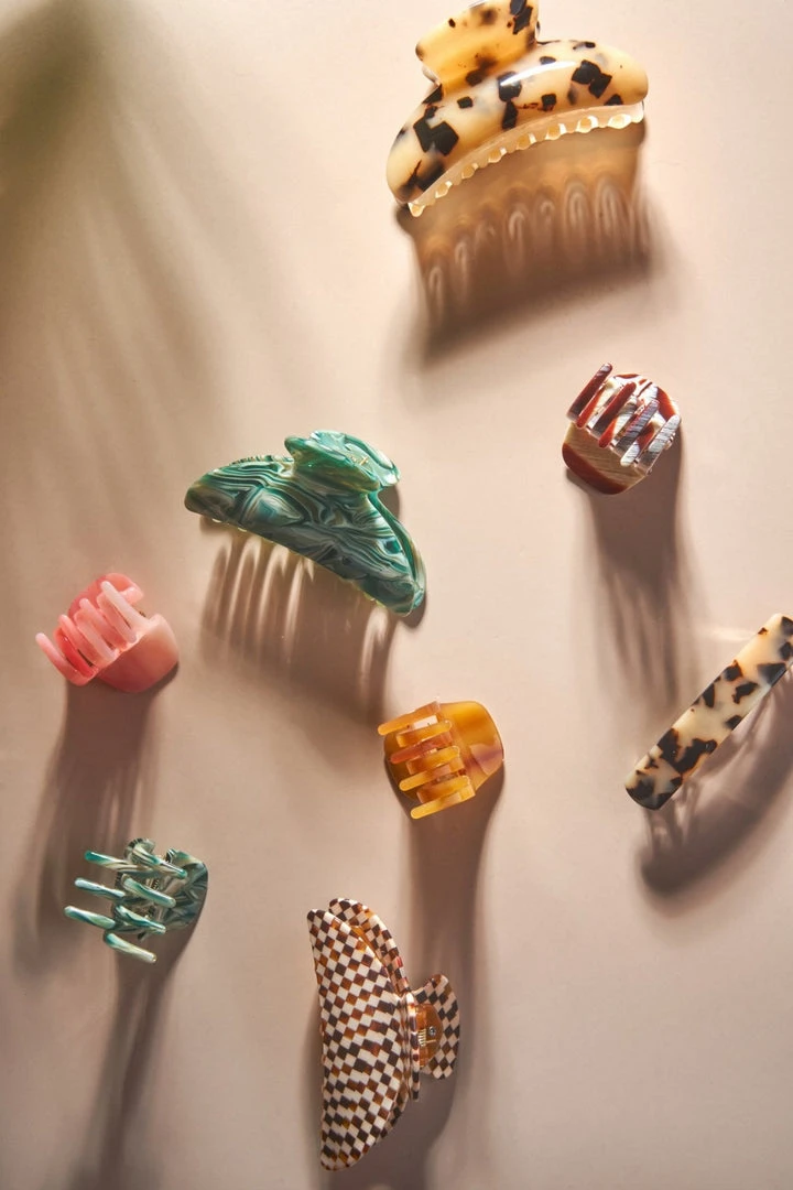 The model wears our Midi Heirloom Claw in Stromanthe.Â