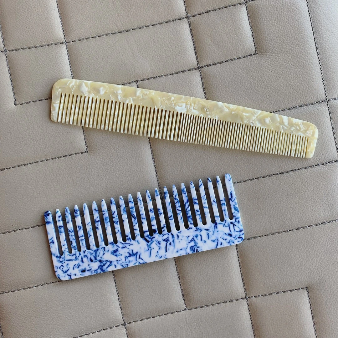 Our wide tooth No. 2 Comb is so functional and stylish you will never want to put it away. But just in case you have to, it comes with a pouch for easy storage. Suitable for all hair types including wavy and curly hair.