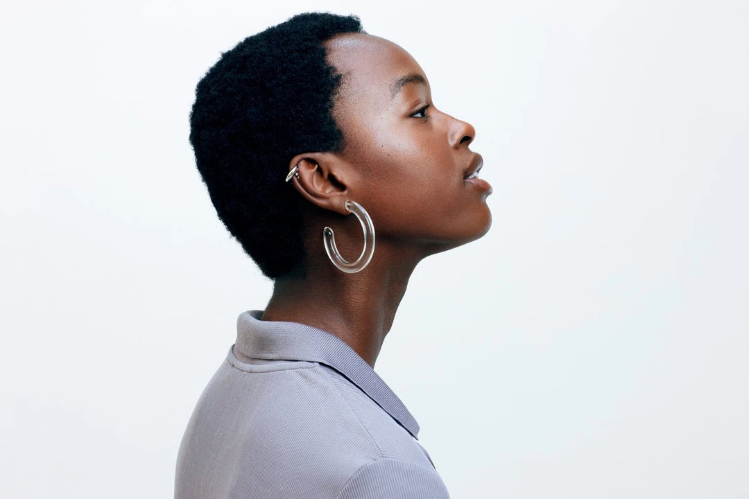 A Machete best seller, our Form hoops always make an impression. The model is wearing the Form Hoops in Lucite.