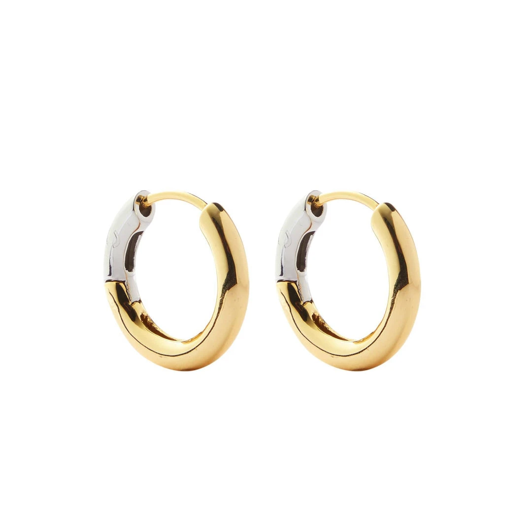 Mixed and matched metals meet an easy, everyday hinge hoop earring.Â