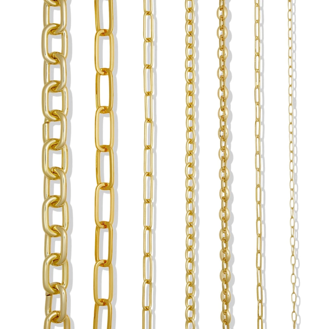 Delicate paperclip chain necklace with a slim, modern chainlink design. Additional image shows all of our chain-link styles side by side.Â