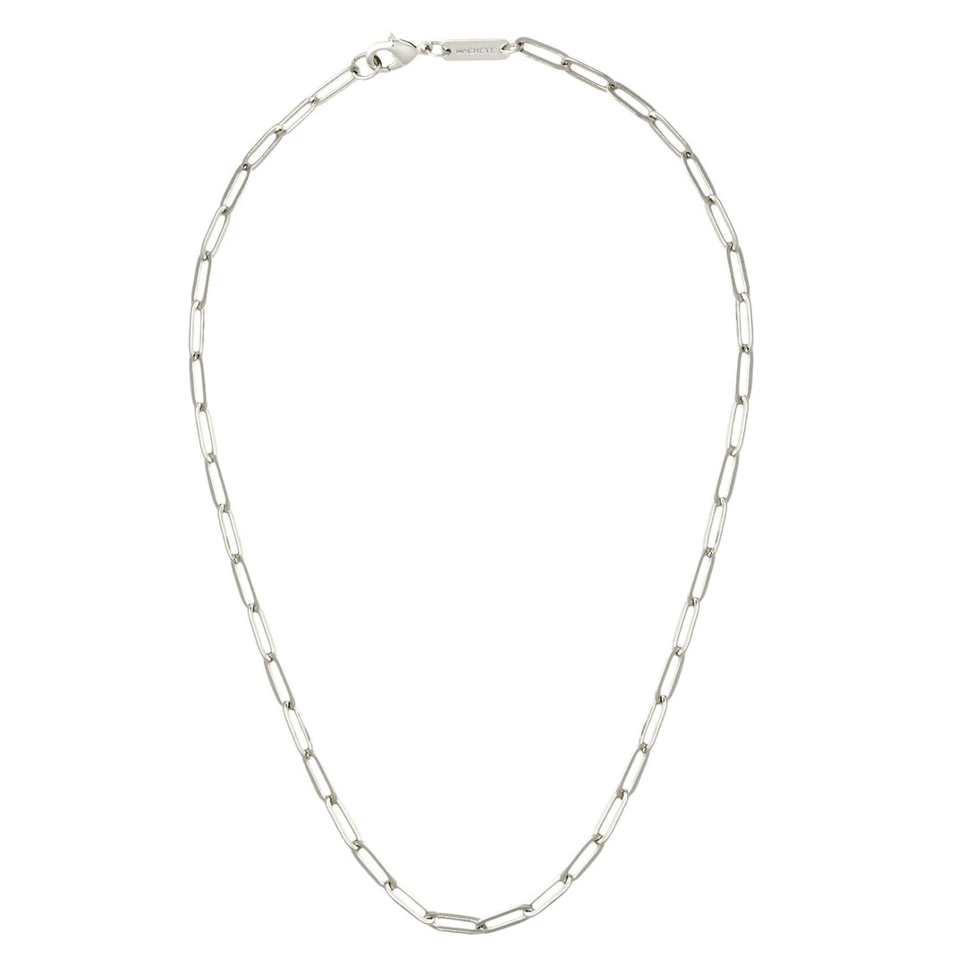 Delicate paperclip chain necklace with a slim, modern chainlink design. Additional image shows all of our chain-link styles side by side.Â