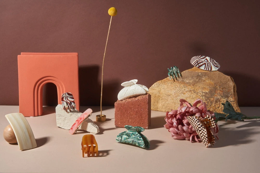 The model wears our Midi Heirloom Claw in Stromanthe.Â