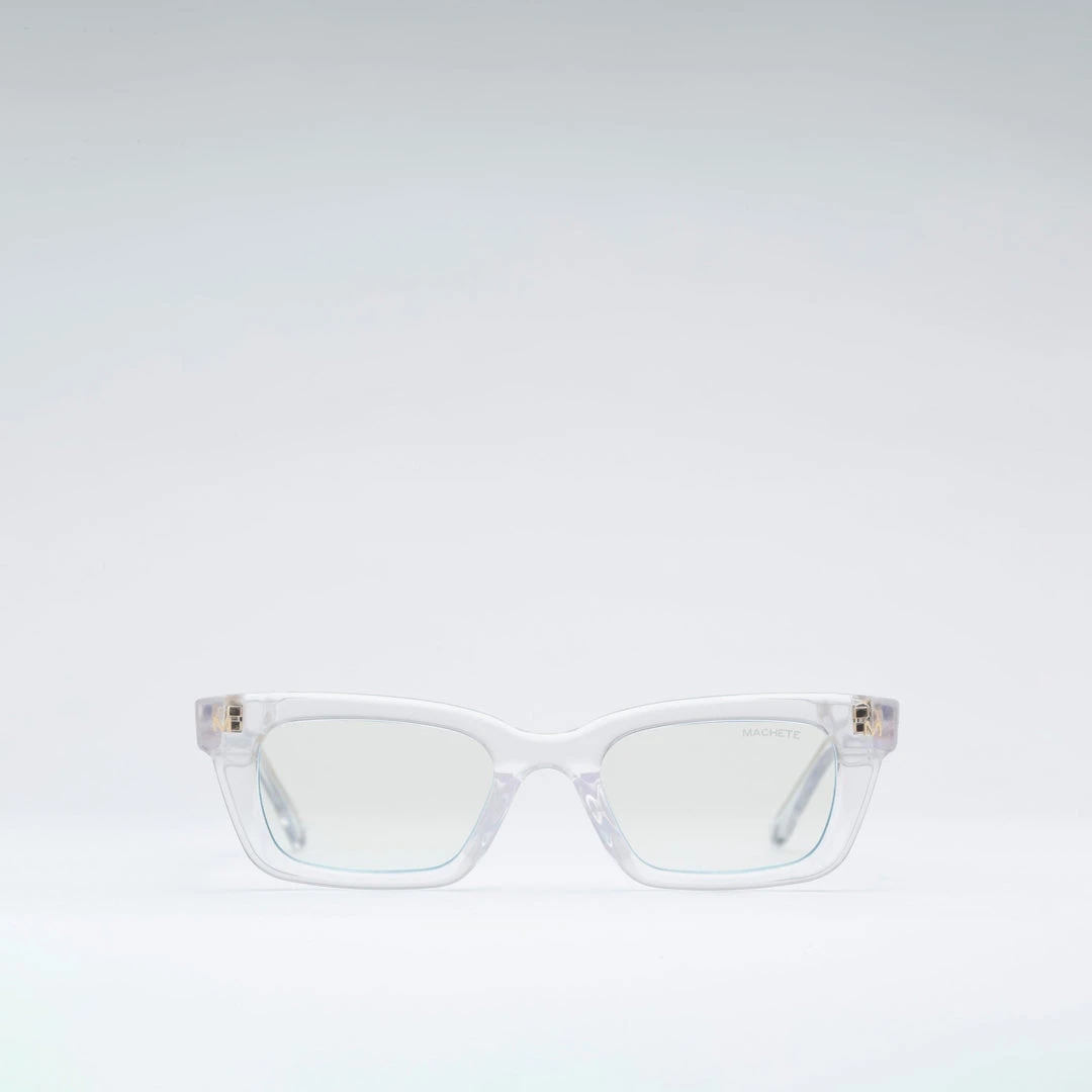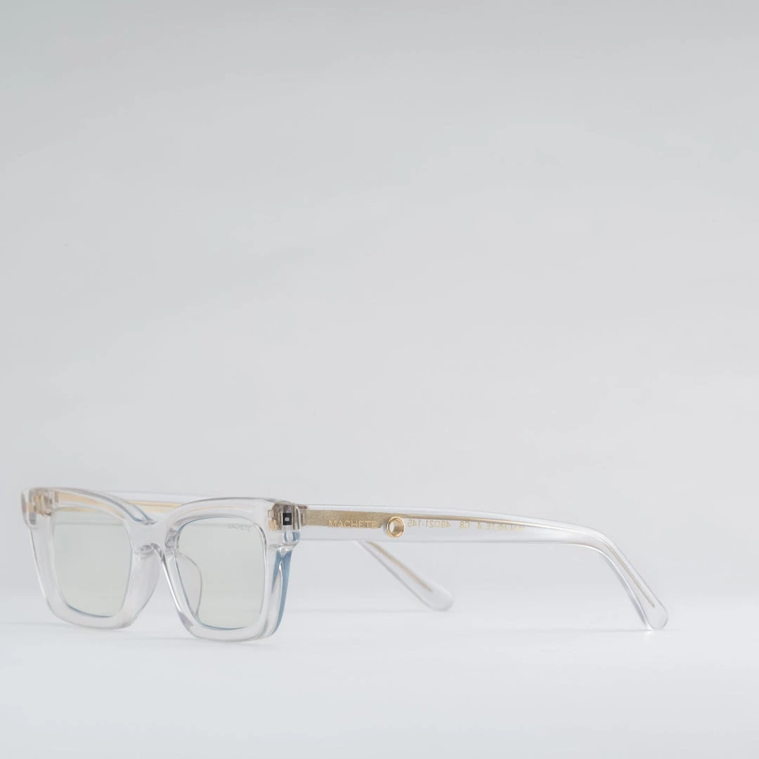 This ‘90s inspired rectangular frame in Machete’s signature show-stopping acetate brings the chic style of this iconic decade to the modern era. Handcrafted from the most environmentally friendly and highest-quality acetate on the market today to ensure your frames will not only last but be kind to the planet as well. A gold Machete logo, hardware as well as a ring for your eyeglass chain at the temples.