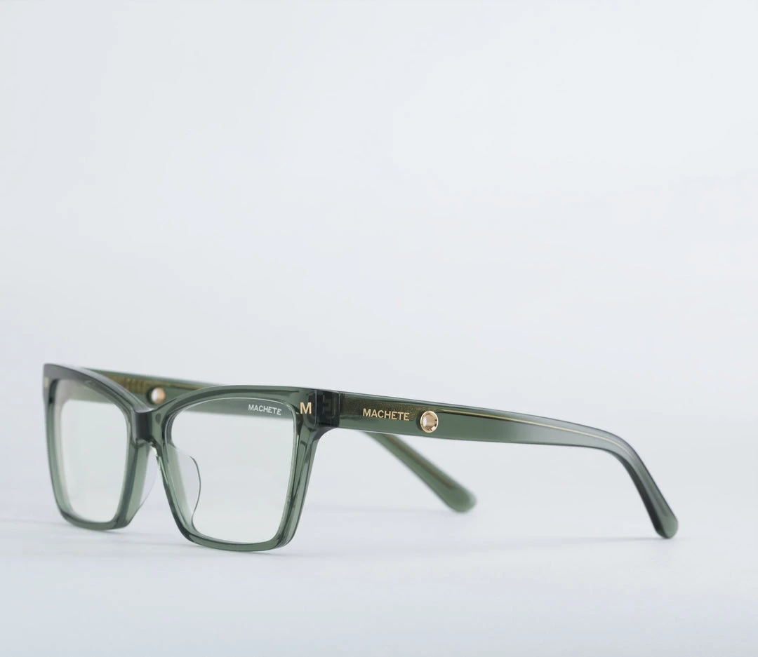 With a subtle cat-eye shape and sharp-edged frame, Sally hits the mark at all angles. Handcrafted from the most environmentally friendly and highest-quality acetate on the market today to ensure your frames will not only last but be kind to the planet as well. Adorned with a gold Machete logo and hardware as well as a ring for your eyeglass chain at the temples.