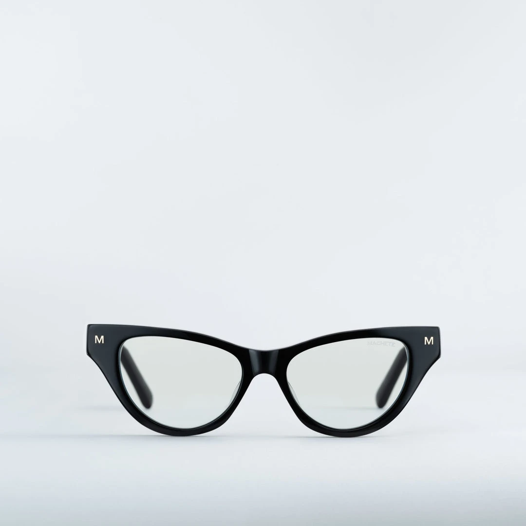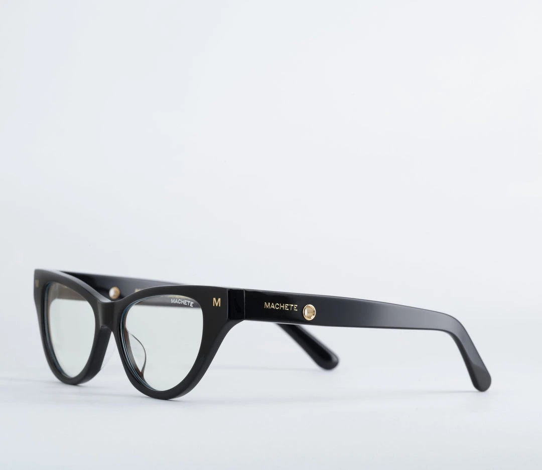 Take any ensemble to the next level with Suzy, our ultra-sleek narrow cat-eye frame. Handcrafted from the most environmentally friendly and highest-quality acetate on the market today to ensure your frames will not only last but be kind to the planet as well. Adorned with a gold Machete logo and hardware as well as a ring for your eyeglass chain at the temples.