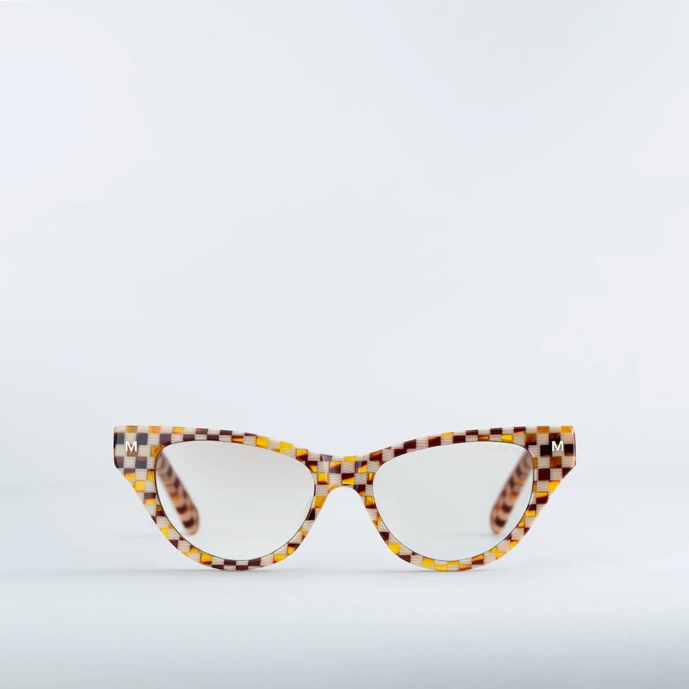 Take any ensemble to the next level with Suzy, our ultra-sleek narrow cat-eye frame. Handcrafted from the most environmentally friendly and highest-quality acetate on the market today to ensure your frames will not only last but be kind to the planet as well. Adorned with a gold Machete logo and hardware as well as a ring for your eyeglass chain at the temples.